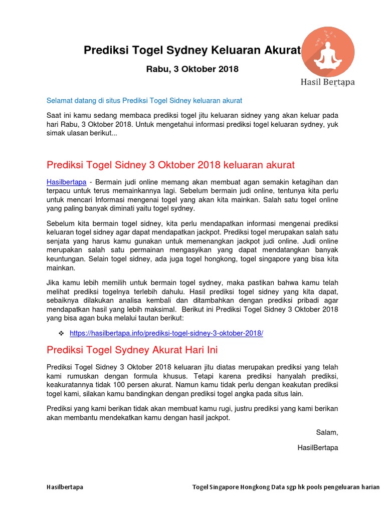 Togel Sidney Keluaran Hasil Togel Sydney Hari Ini 2020 03 19