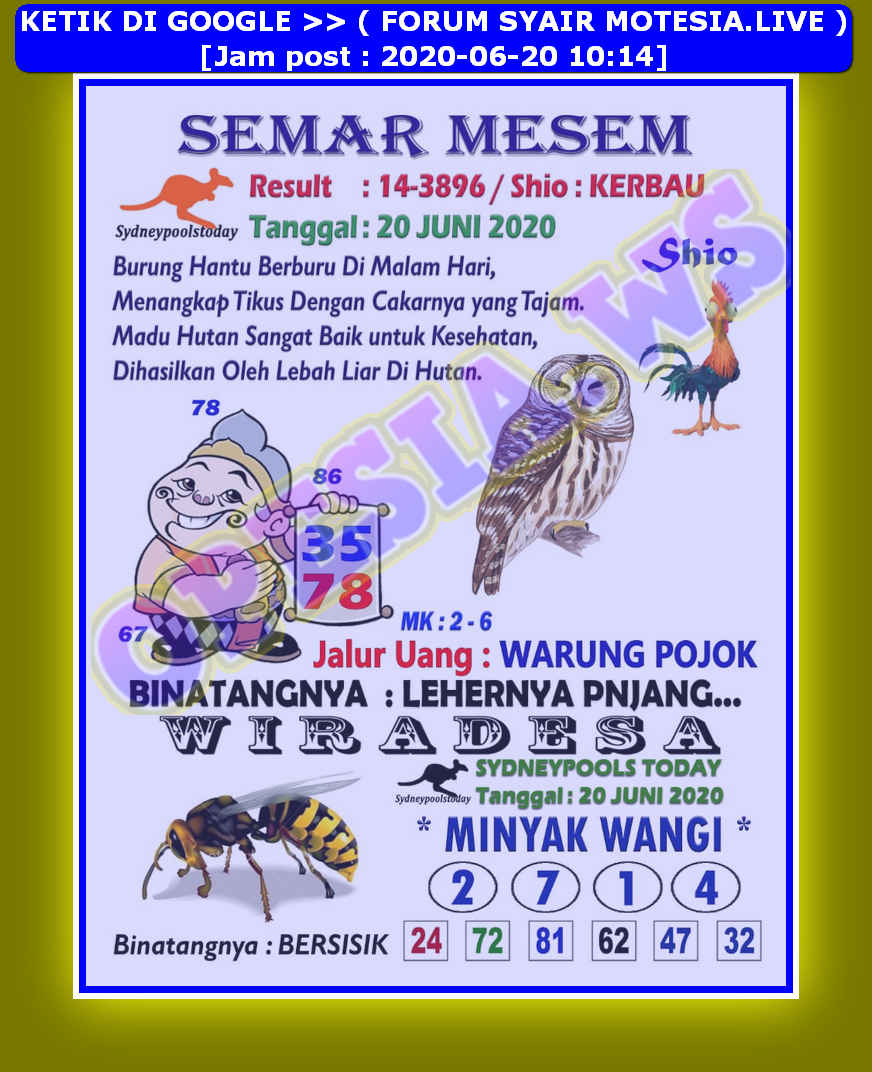 Syair Sydney Minggu 21 Juni 2020 Prediksi Togel
