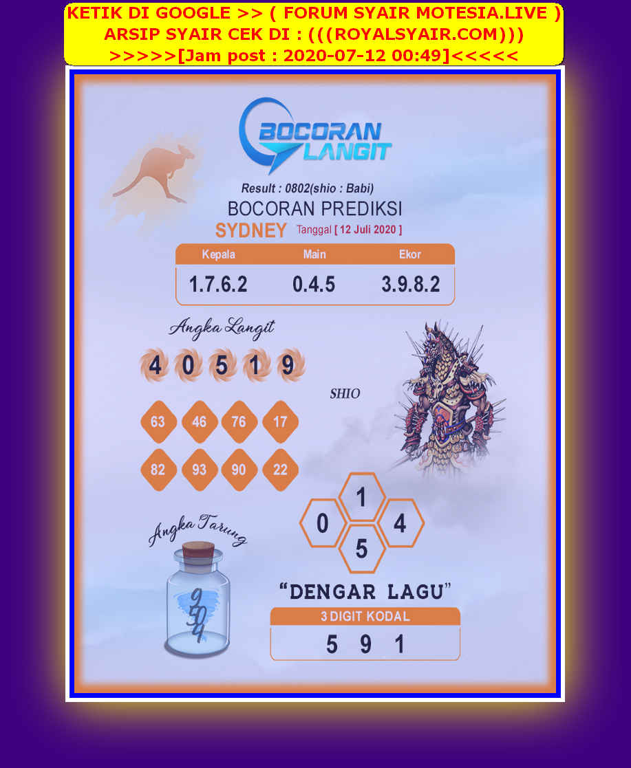 Prediksi Sydney Minggu 12 Juli 2020 Sdy Terjitu Akurat