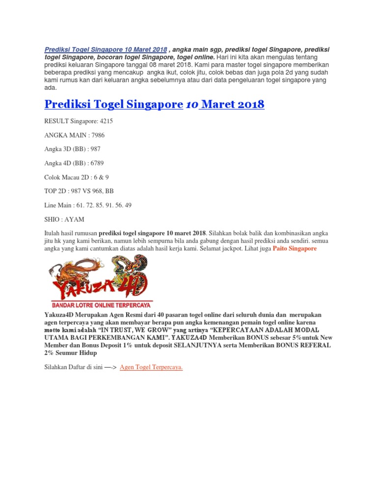 Prediksi Sgp Hari Ini Libur Togel Singapura Keluar www.easybranches.com
