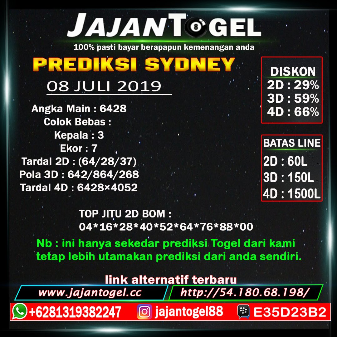 Prediksi sdy jumat jitu 2d hari ini pengeluaran nomor togel sydney pools info bocoran angka sdy jitu 2d jumat kode prediksi medan73. Prediksi togel sydney sd prediksi togel sydney bocoran togel syd hari ini angka main jitu togel sd dan data live result pengeluaran keluaran togel sydney. Bocoran togel paling jitu prediksi sydney hari ini prediksi togel jitu comments prediksi sydney kamis 13 agustus 2020 master togel cinta merupakan situs prediksi judi togel secara online yang menjalankan sebuah rumusan generator angka judi togel dengan pasaran resmi dari berbagai negara asia maupun eropa.